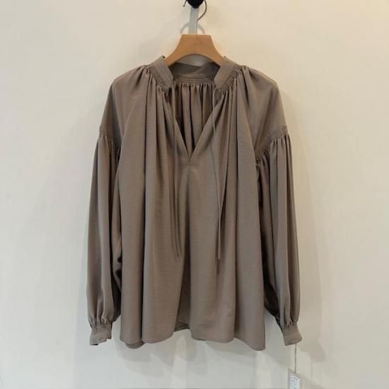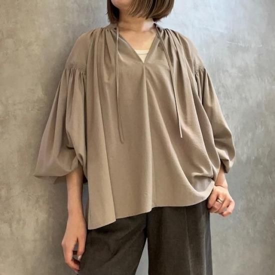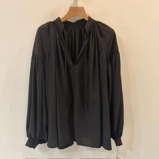 しなやかで柔らかいポリエステル素材のスキッパーブラウス。