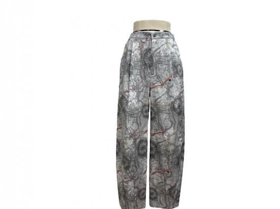 【予約】ayane マップ柄プリントバレルレッグパンツ